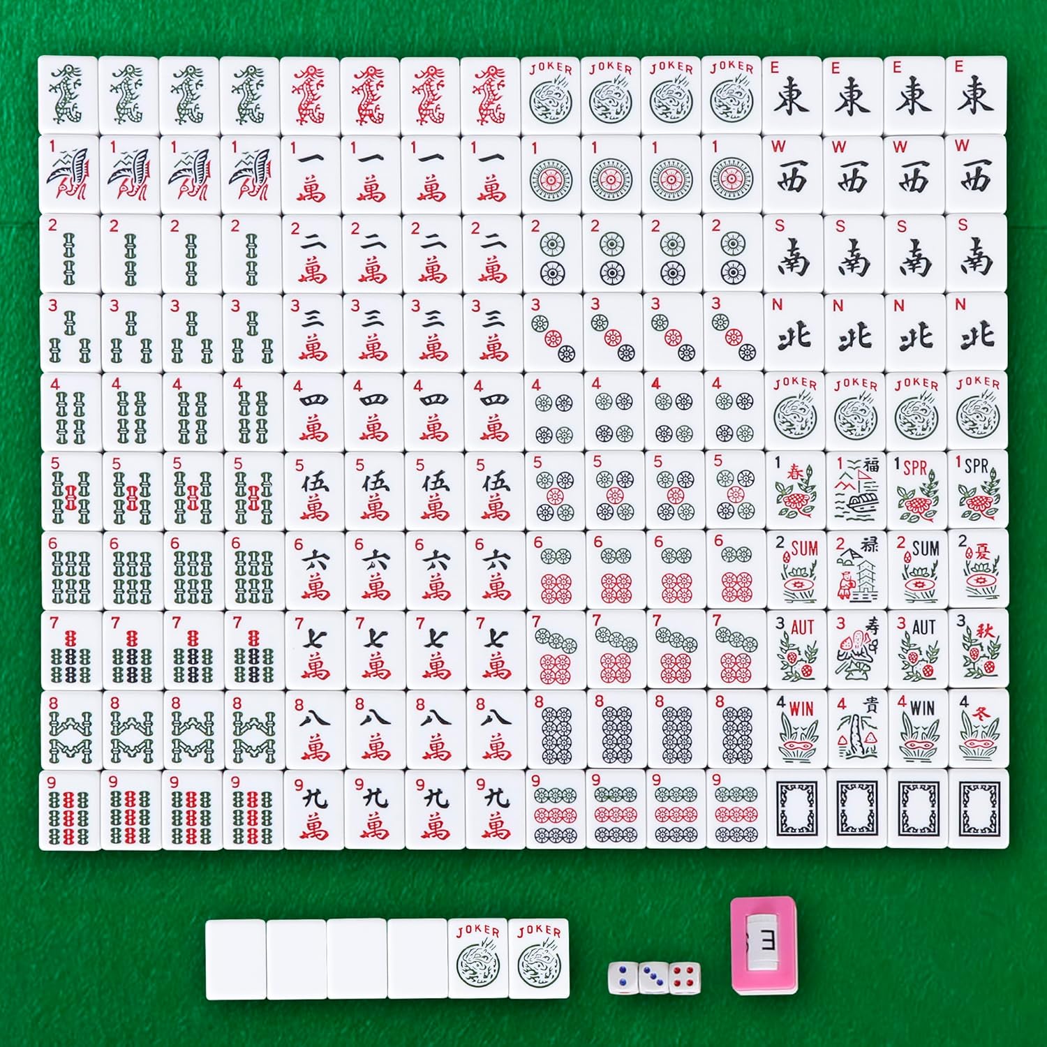 - 【High-Quality, Durable Mahjong Tiles】- Smartxchoices American Mahjong Set features 166 premium tiles made from high-quality melamine, ensuring long-lasting durability and scratch resistance. The crisp and clear characters and symbols on each tile make them easy to recognize, providing a smooth and enjoyable gameplay experience for all players