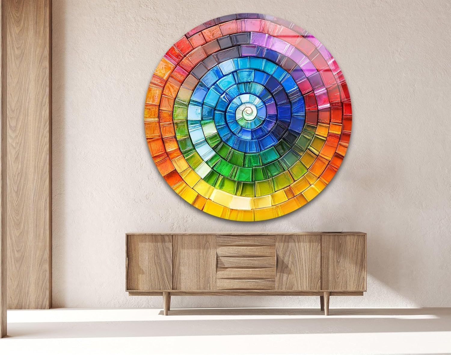 My Photostation.com 27.5''(70cm) Diameter Radiant Spiral Spectrum Round Glass Wall Art Tempered Glass Printing Wall Decor Large Wall Art Wall Hangings