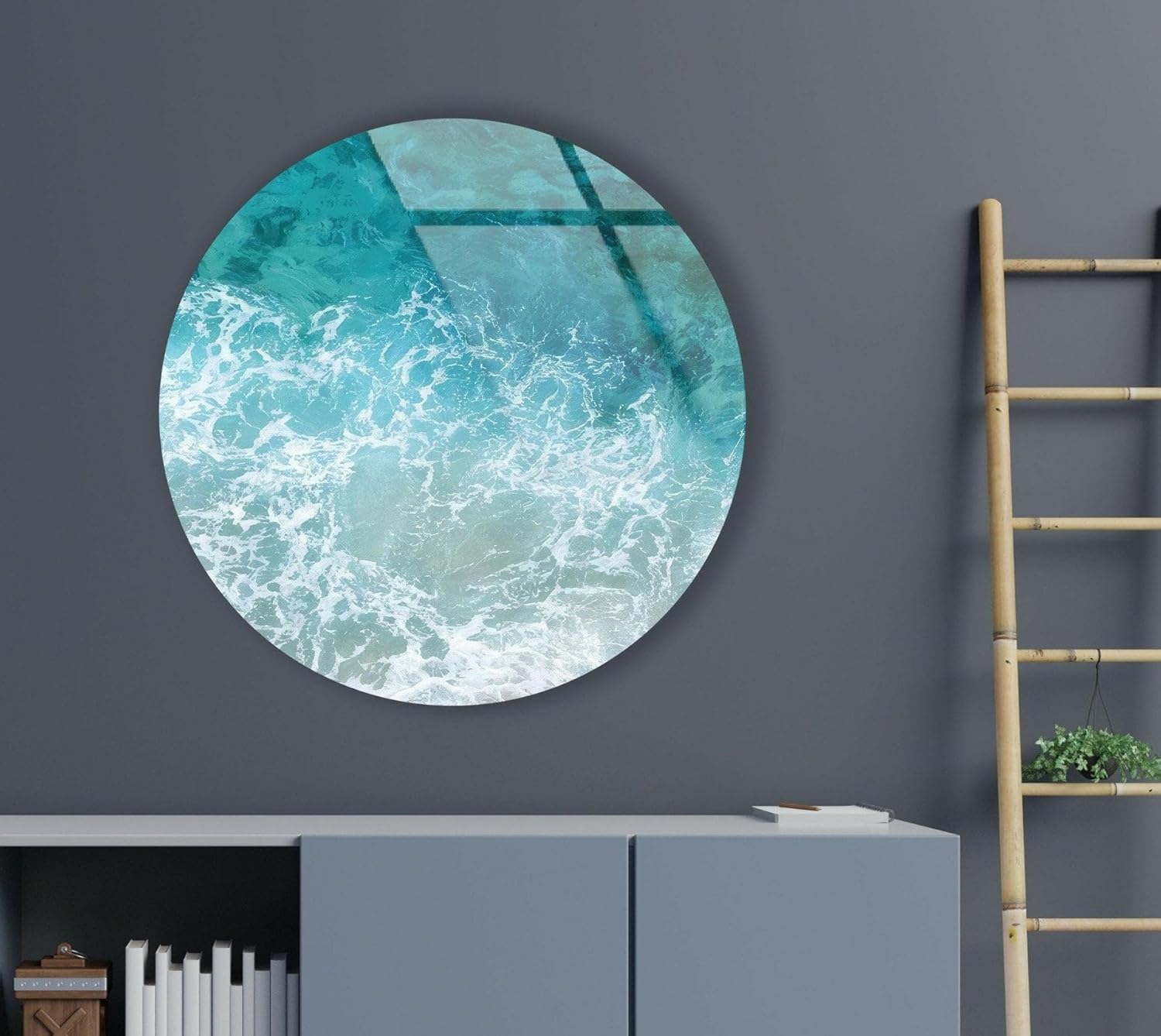 My Photostation.com 39,4''(100cm) Diameter Sea Waves Round Glass Wall Art Tempered Glass Printing Wall Decor Large Wall Art Wall Hangings