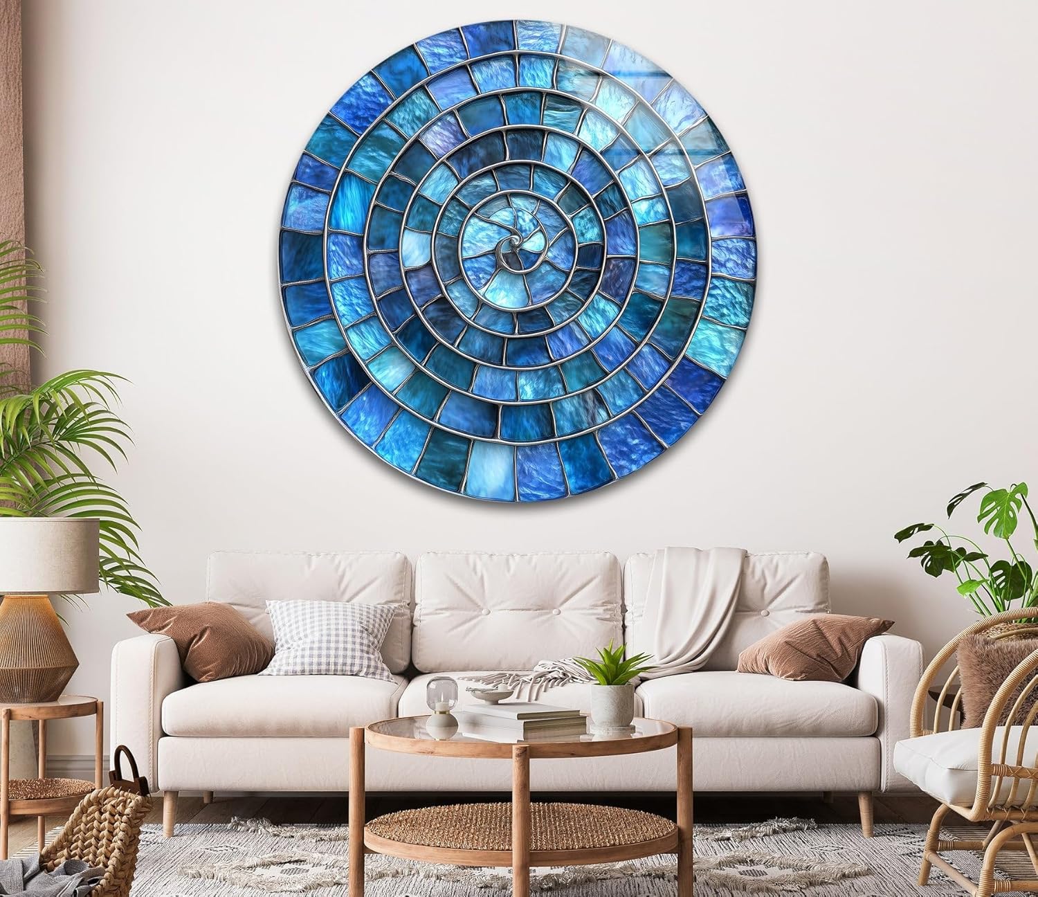 My Photostation.com 10''(25cm) Diameter Blue Aqua Spiral Harmony Round Glass Wall Art Tempered Glass Printing Wall Decor Large Wall Art Wall Hangings