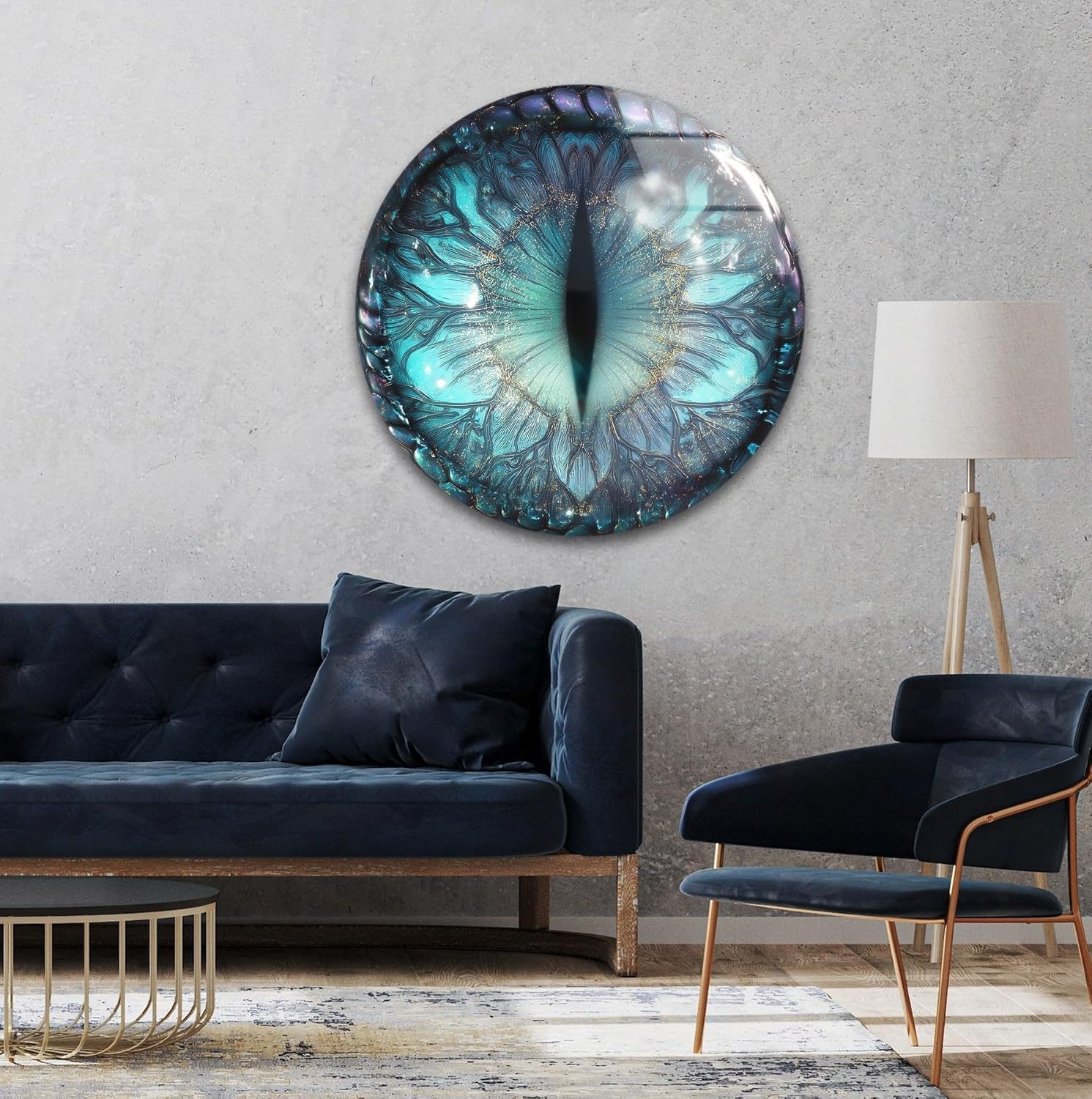 My Photostation.com 15.8''(40cm) Diameter Mystical Dragon Eye Round Glass Wall Art Tempered Glass Printing Wall Decor Large Wall Art Wall Hangings