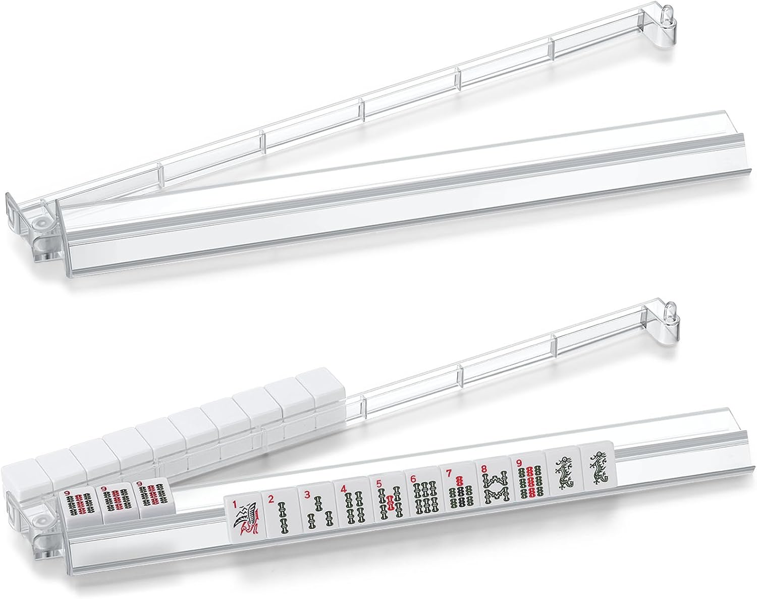 4 PCS Clear Acrylic American Majiang Tile Racks with Pushers,Mahjong All-in-One Tile Rack & Pusher, Modern American Mahjong Tile Racks