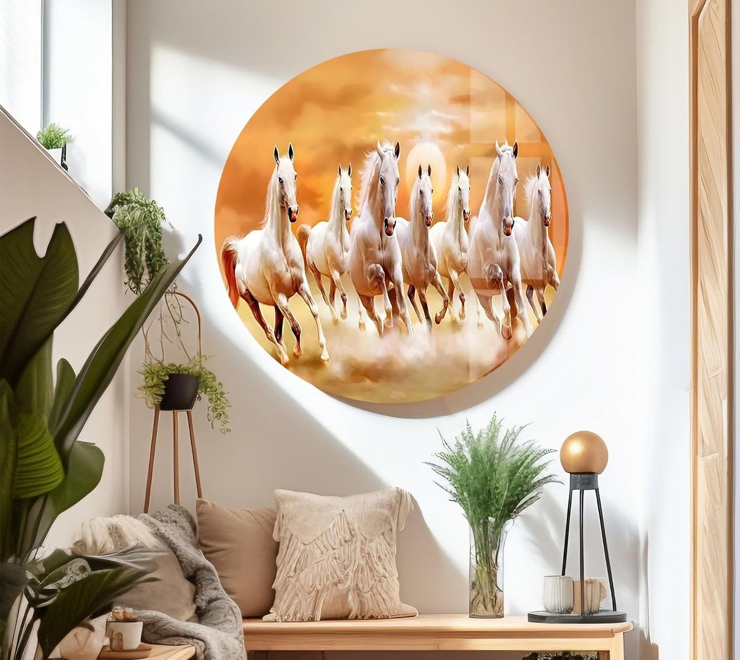 My Photostation.com 20Wx14H'' White Horses Running on Sunset Glass Wall ArtTempered Glass Printing Wall Decor Large Wall Art Wall Hangings