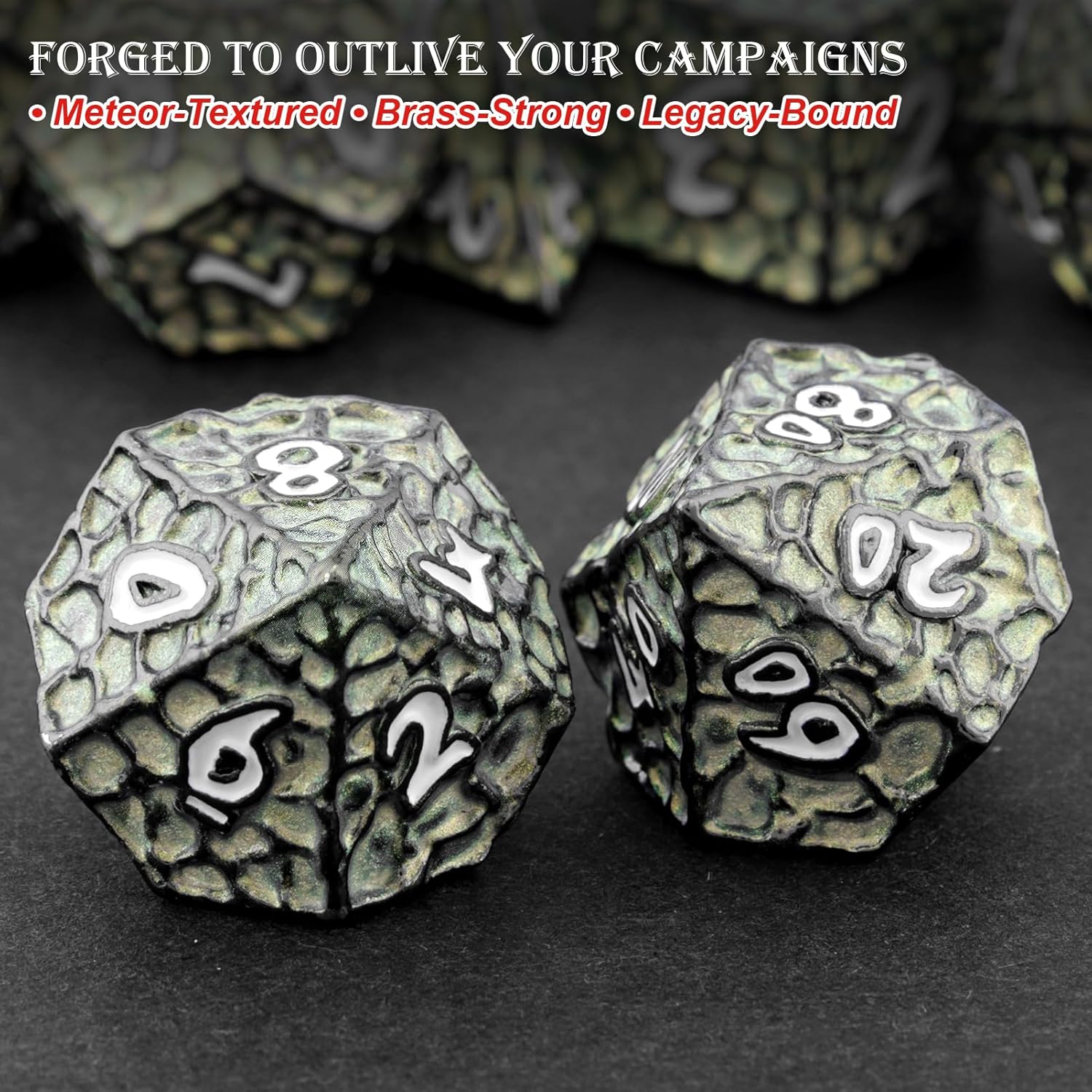 - Ancient Metal DND Dice Set- 7pcs metal dice for role playing games: 1xD20, 1xD12, 2xD10(one 00-90, one 0-9), 1xD8, 1xD6, 1xD4, 1X PU Leather Dice Bag