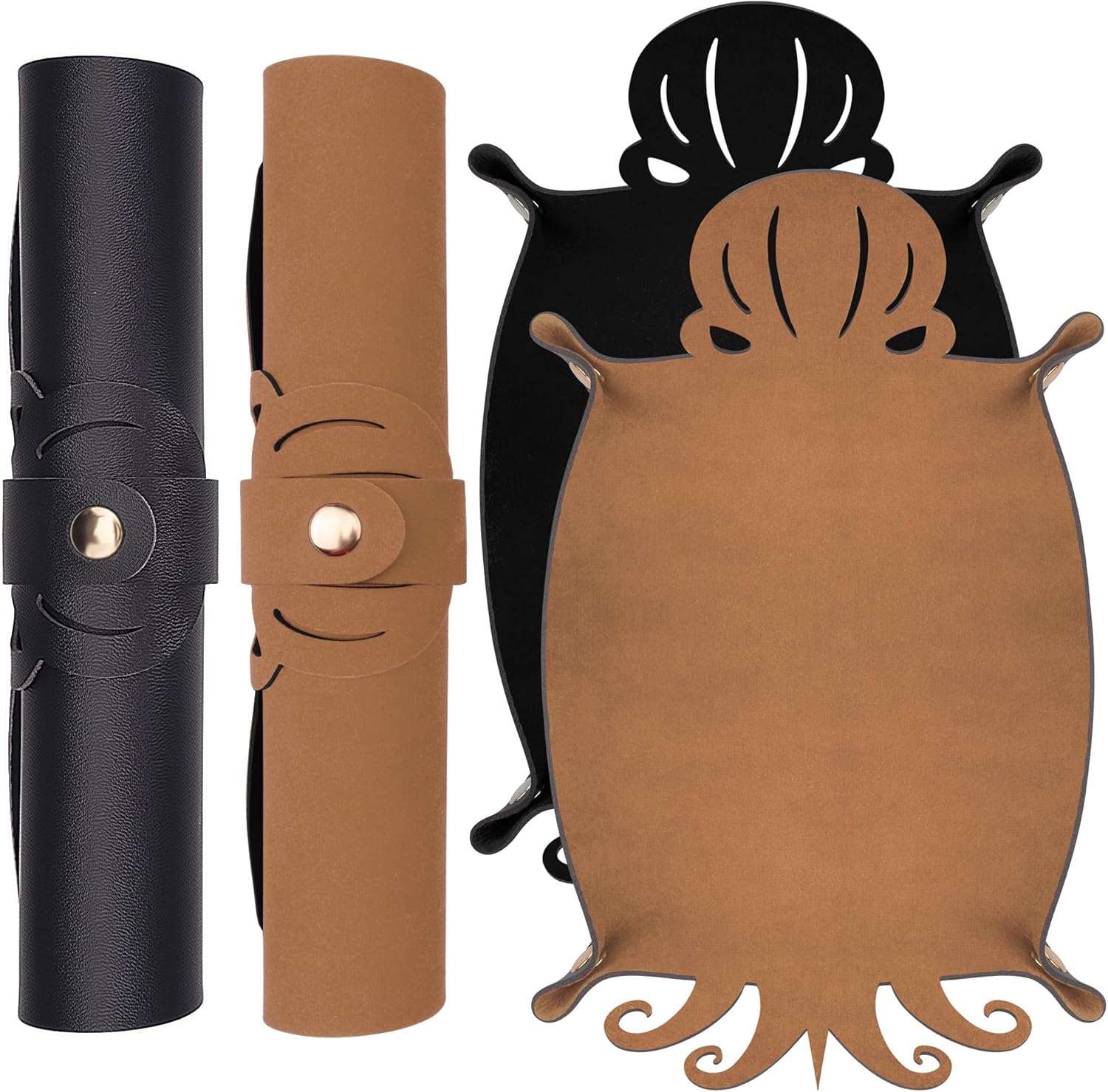 SIQUK 2 Pieces Octopus Dice Rolling Tray PU Leather Dice Mat Folding Scroll Dices Holder Trays for D&D RPG Games (Camel, Black)