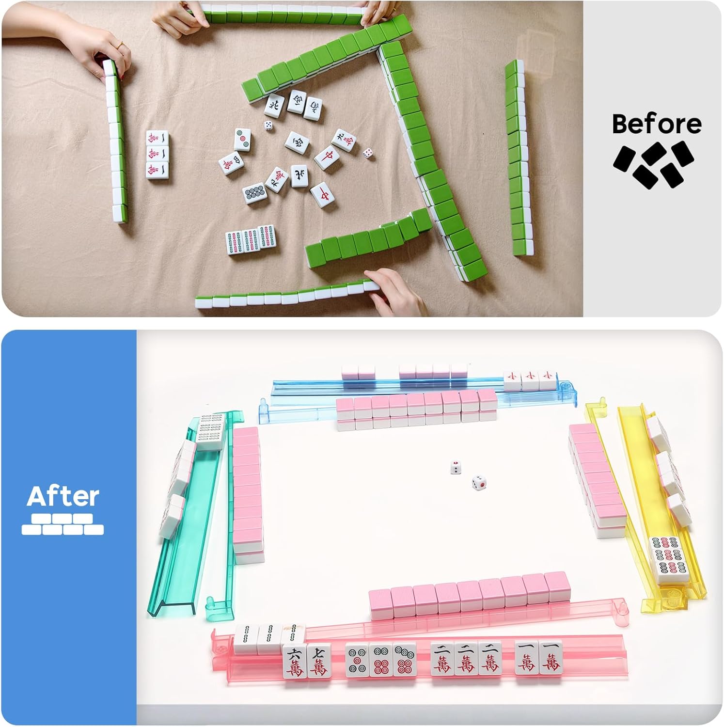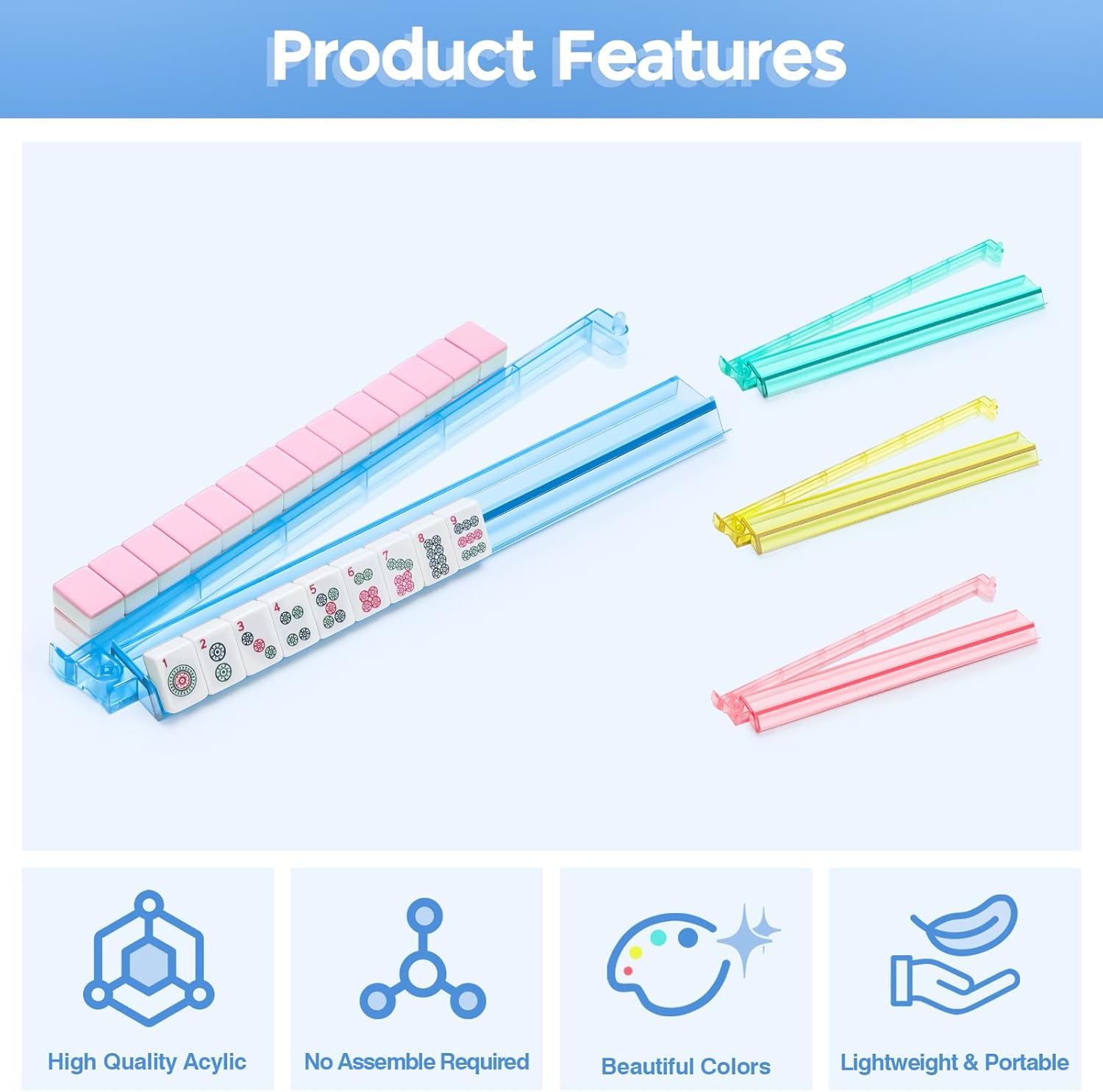 Mahjong Racks with Pushers Set of 4, Mahjong Tile Pushers and Racks, Acrylic Majiang Tile Holders Accessories (4 Colors)