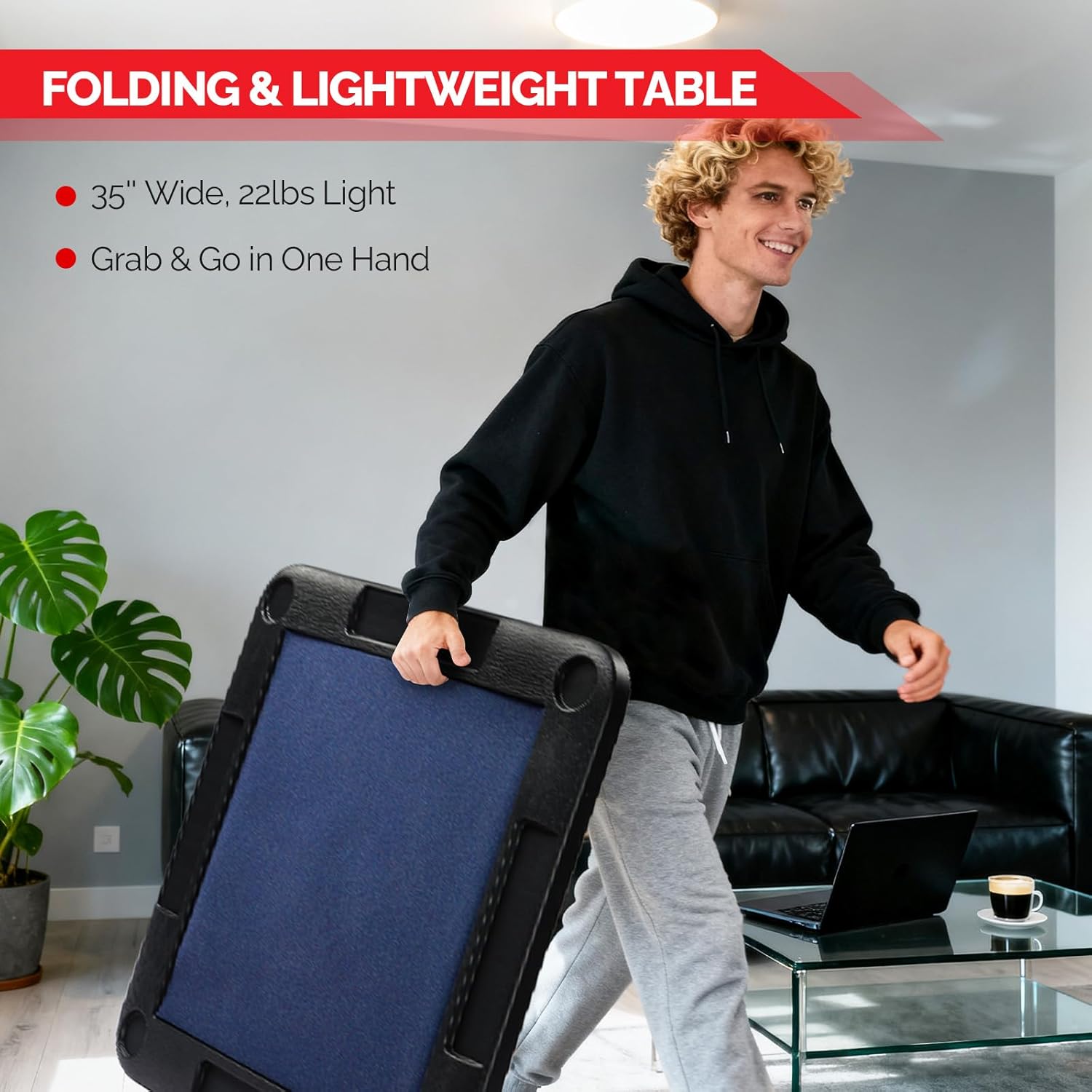 - 【Sturdy & Durable】It is made of strong and durable high-quality PE material and powder-coated iron frame. The non-slip feet and triangular support hinge design of the table legs add stability while avoiding scratching the floor. The honeycomb structure design makes the table top more pressure-resistant and less prone to deformation.It able to bear up to 265 lbs.